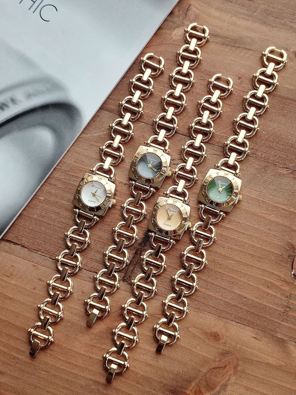 💢ساعت زنانه مارک الینا Eliyina رنگ طلایی قفل دستبندی موتور با کیفیت کیفیت بسیار خوب