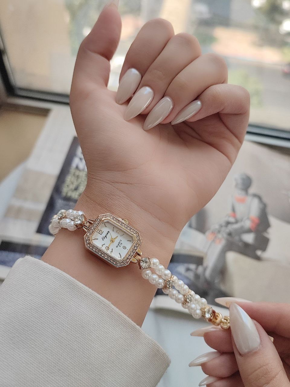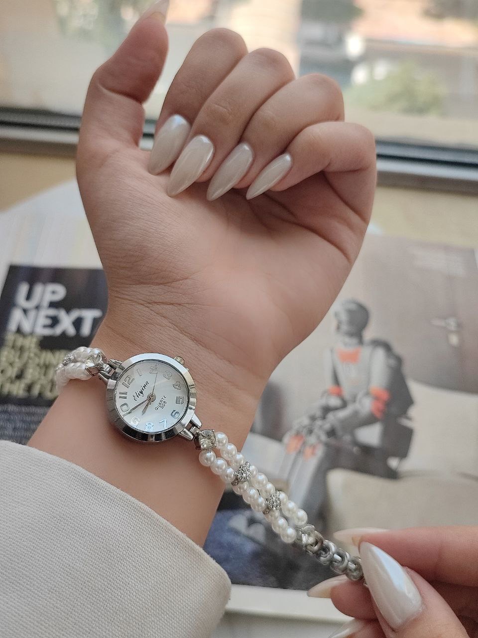 ساعت زنانه مارک الینا 💕بند مروارید _قفل دستبندی_ موتور باکیفیت_قاب و بند فلزی_ کیفیت عالی