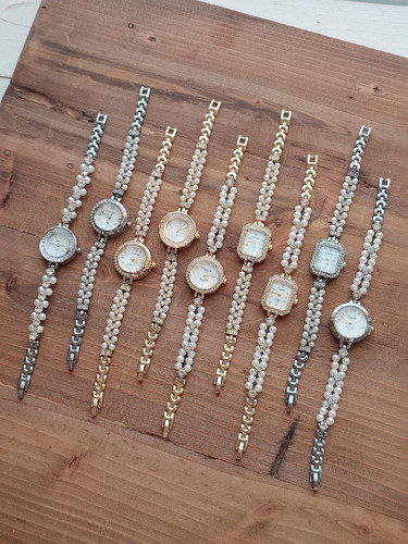 ساعت زنانه مارک الینا 💕بند مروارید _قفل دستبندی_ موتور باکیفیت_قاب و بند فلزی_ کیفیت عالی