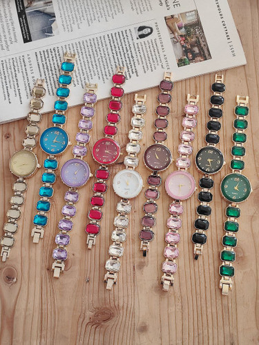 ساعت زنانه بند نگین دار ♥️ صفحه گرد_بندنگین _قفل دستبندی _موتوذ با کیفیت _رنگبندی متنوع
